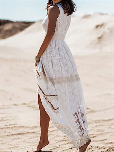 This Summer Hollow Dress Solid Color Lace Stitching Long Skirt Women's Sleeveless Vest Dress combines elegant design with practical functionality. Every detail has been carefully considered to ensure you get the premier possible experience. The finest construction means this product will serve you well for years to come.