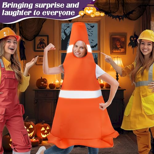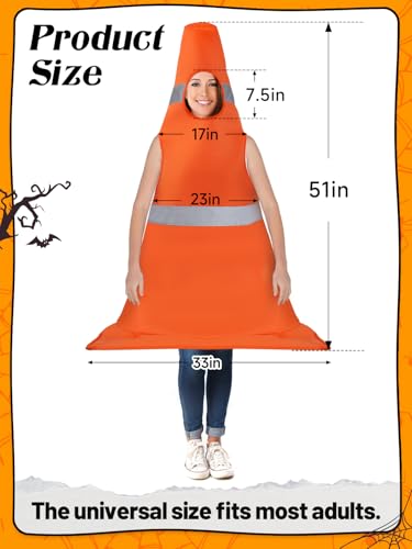 Traffic Cone Costume Adult - 51in Funny Construction Cone Halloween Costumes with Gray Light Responsive for Men Women, Orange