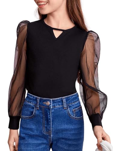 Why Choose WDIRARA Girl's Cut Out Round Neck Mesh Puff Long Sleeve Blouse Casual Top?