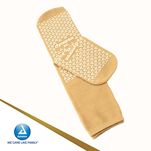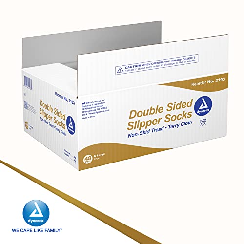 Dynarex Double Sided Non-Skid Socks - Non-Slip Hospital Slipper Socks with Grips, Unisex - Polyester-Spandex Blend - toasty, Fuzzy, No Latex - X-Large, 48 Pairs per Case
