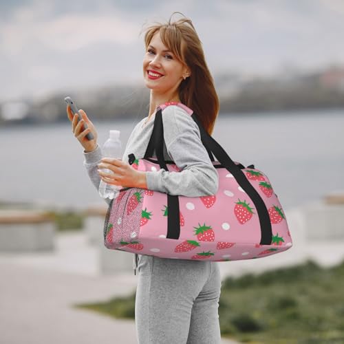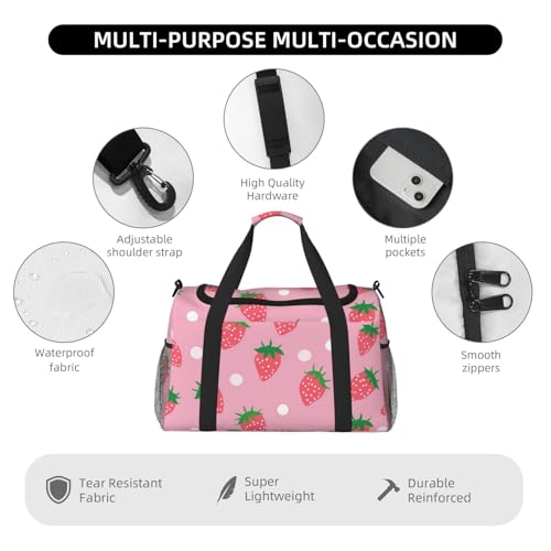 Strawberry Polka Dot Duffle Bag Foldable Travel Tote Bag Carry On Large Weekender Overnight Bags Waterproof Gym Bag For Women Men