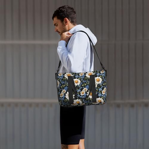 • Unisex Travel Bag: With its chic design, this Blue and White Daisies Print duffel bag fits seamlessly into any setting. It functions not just as a men's travel duffle bag but also adapts beautifully as a carry on duffel bag for women. It's your go-to choice for gym sessions, a weekend getaway, or as a hospital bag for women labor delivery, ensuring you stay organized and chic