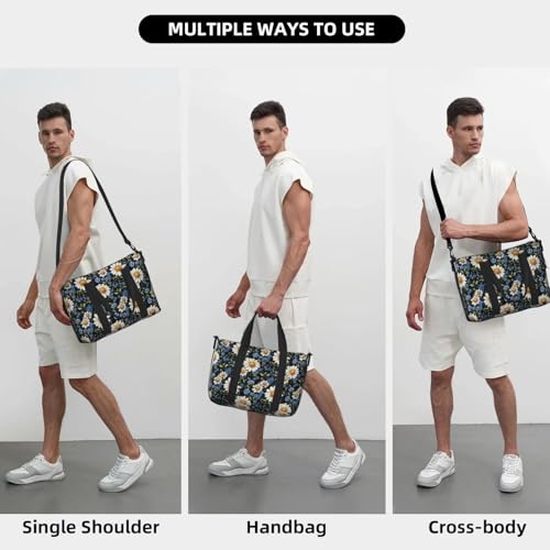 More information about Blue and White Daisies Print Travel Duffle Bags for Women, Personal Item Overnight Weekender Sport Carry On Gym Bag for Men Women