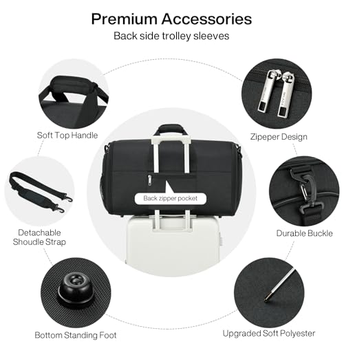 trending ! MILADA Convertible 2-in-1 Garment Duffel Weekender Bag Carry On Garment Bags for Travel Hanging Clothes Suit Bag Foldable Personal Item Business Overnight Bag with Shoe Compartment, Black