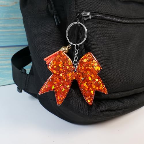 trending ! Glitter Cheer Bow Keychain - Cheer Charm Backpack Keychains - Girls Cheerleading Accessories - Cheer Gift for Cheerleaders and Team Members - Orange/2pcs