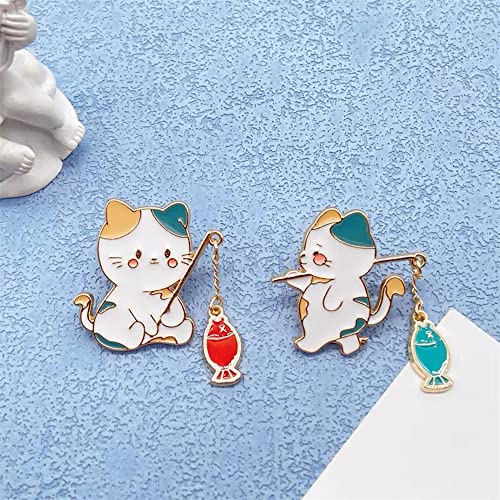 trending ! 2 Pcs Cute Cat Lapel Pins for Backpacks Enamel Animal Pet Cat Fishing Brooch Pin Cartoon Lapel Badge Brooch Pin for Jackets Hat Bag