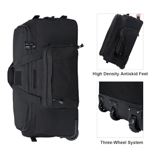 Military Tactical Wheeled Deployment Bag Rolling Duffel Trolley Bag for Camping (Black) 4