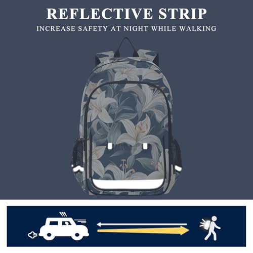 ALAZA Elegant Floral with Lily School Backpacks Reflective Safety Backpack 3