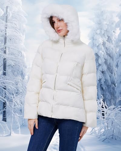 WULFUL Women's Winter Coats toasty Lightweight Thicken Puffer Jackets with Faux-Fur Hood
