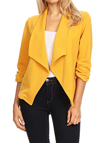 trending ! Women's Solid Formal Office Style Open Front Long Sleeves Blazer - Made in USA