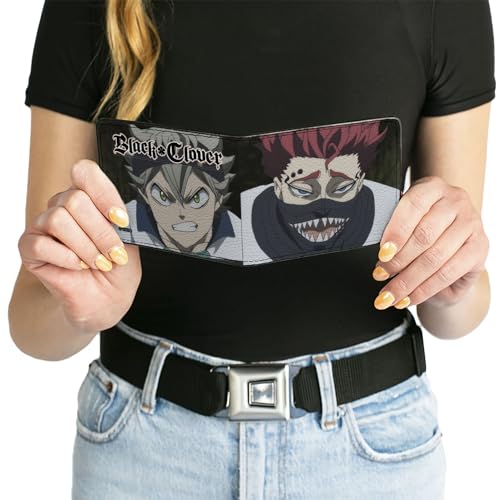 trending ! Crunchyroll Wallet, Bifold, Black Clover Zora and Asta Faces and Title Logo Black, Vegan Leather