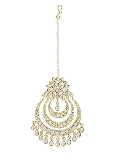 Aheli Faux Kundan Pearl Maang Tikka Bridal Indian Traditional Bollywood Jewelry Set Gift for Women 1
