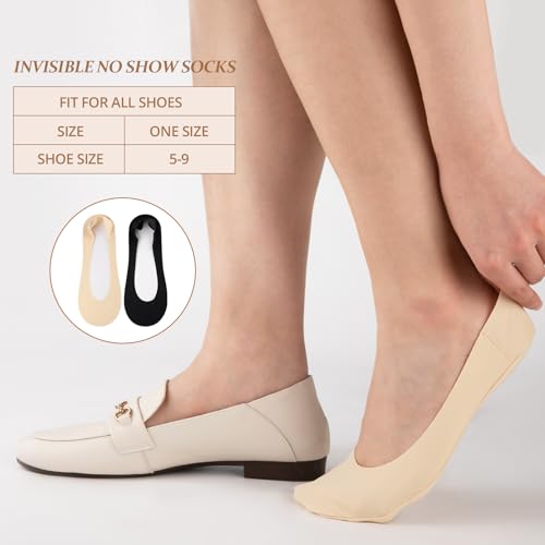 • [Value Pack Womens Sock]: The invisible socks for women fit US women’s shoe size 5-9. One package has 6 Pairs of no show socks womens,available in two iconic colors: nude and black, these footies socks for women can complement various outfits and shoes