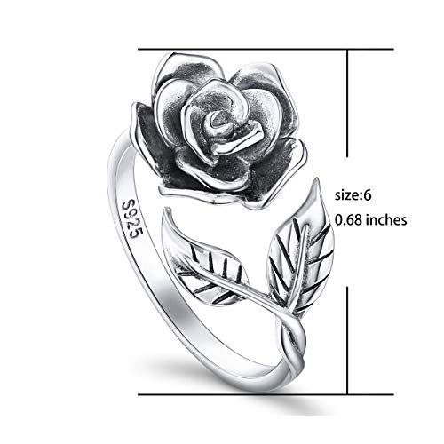 Alphm S925 Sterling Silver Rose Flower Ring Adjustable Wrap Open Jewelry for Women Friend Mom Bride Girlfriend Sisters Teen 6