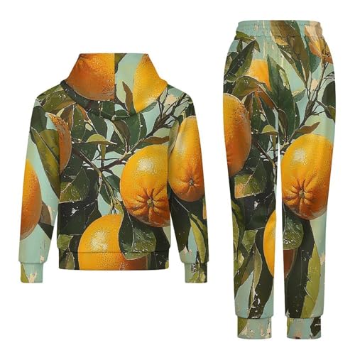 trending ! Boys Girls Sweatshirt Set 2 Piece Pullover Hoodie Kid Jogger Sweatpants, Passion Tropical Oranges Retro