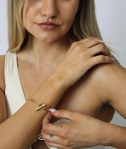 trending ! current Toggle Bracelet + Elegant Paper Clip Design | Gold Jewelry Bracelet for Women | Bold Yet Minimal Chain Bracelet Statement | Gold Paperclip Toggle Bracelet