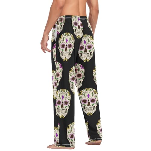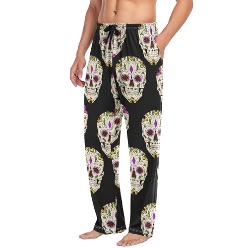 Why Choose ALAZA Day of The Dead Halloween Sugar Skull Men's Straight-Fit Pajama Pants Sleep Lounge Pants Bottoms with Pockets?