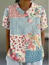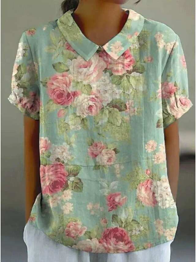 More information about Women's Blouse Floral Elegant Daily chic Short Sleeve Shirt Collar Regular Tops Work Daily Holiday Yellow Pink Blue Green Summer