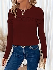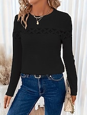 trending ! Women's White Elegant Lace Tops Eyelet Blouse Casual Long Sleeve Regular Tops Crew Neck Daily Romantic Petite Tops Summer Holiday Wear Black White Red Light Brown Spring Fall