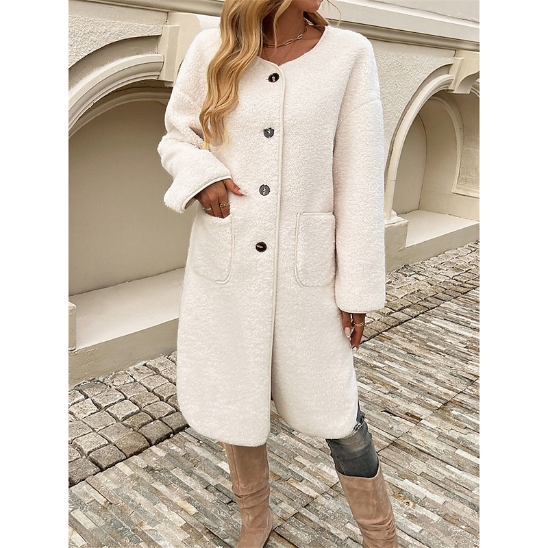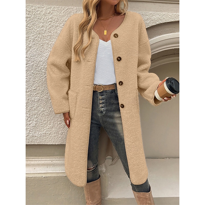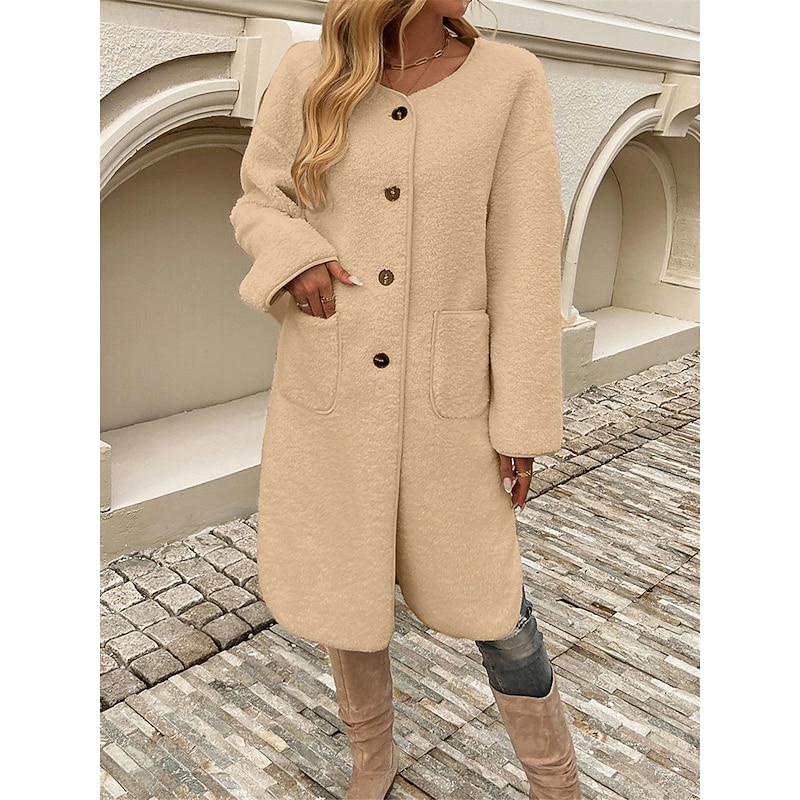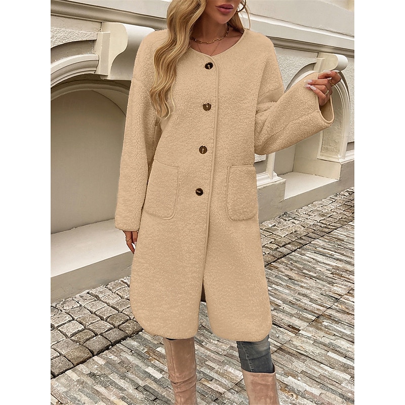 Women's Winter Coat Outdoor Street Daily Wear Fall Winter Long Coat Regular Fit Thermal comfortable Breathable contemporary Casual Jacket Long Sleeve Plain with Pockets Army Green Khaki Apricot