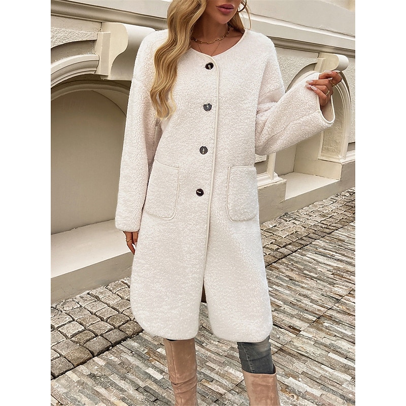 : Designed with a regular fit, this coat provides a relaxed yet elegant silhouette that’s perfect for layering over other clothing. Its long length, reaching just above the knees, offers additional warmth without compromising on style.