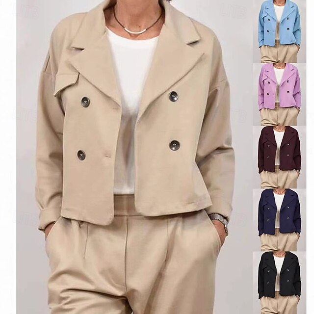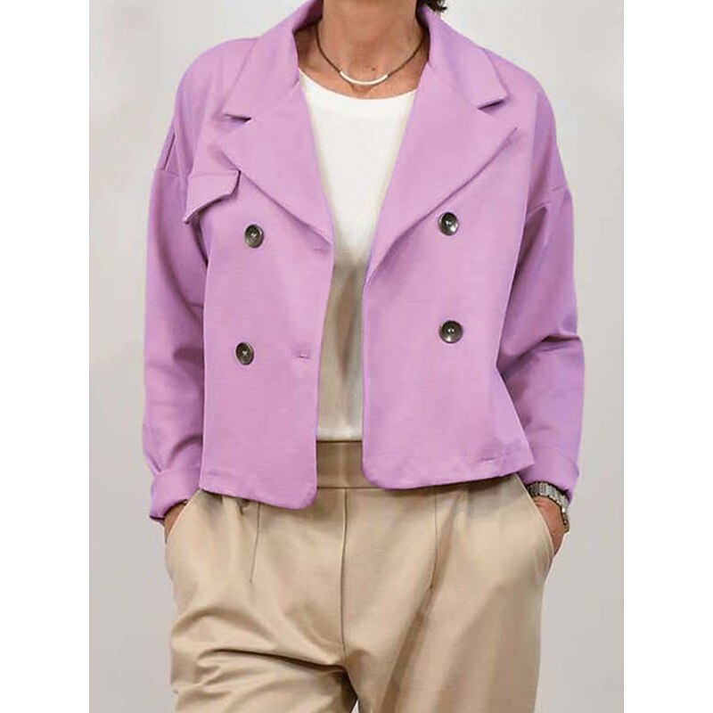 Why Choose Women's Casual Jacket pleasant Breathable Buttons Casual Plain Vacation Street Casual Daily Wear Double Breasted Short Turndown Regular Fit Long Sleeve Outerwear Pink Sky Blue Green Spring Fall?