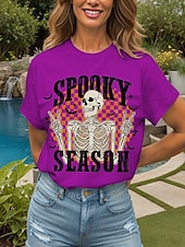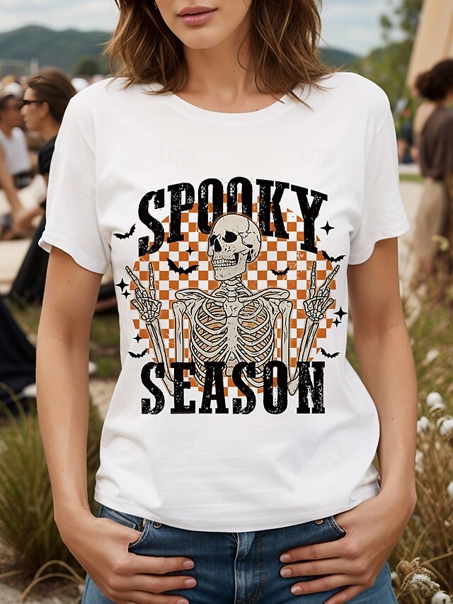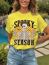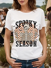 This Halloween Women's T Shirt Skulls Graphic Cat Vintage chic Classic Short Sleeve Crew Neck Round Neck Regular Tops Daily Weekend Print White / Black Black White Yellow Pink Summer Fall combines elegant design with practical functionality. Every detail has been carefully considered to ensure you get the best possible experience. The first-class construction means this product will serve you well for years to come.