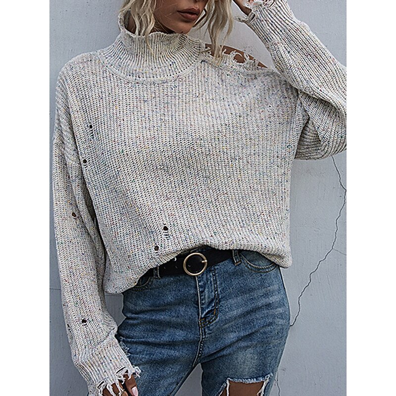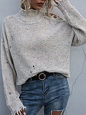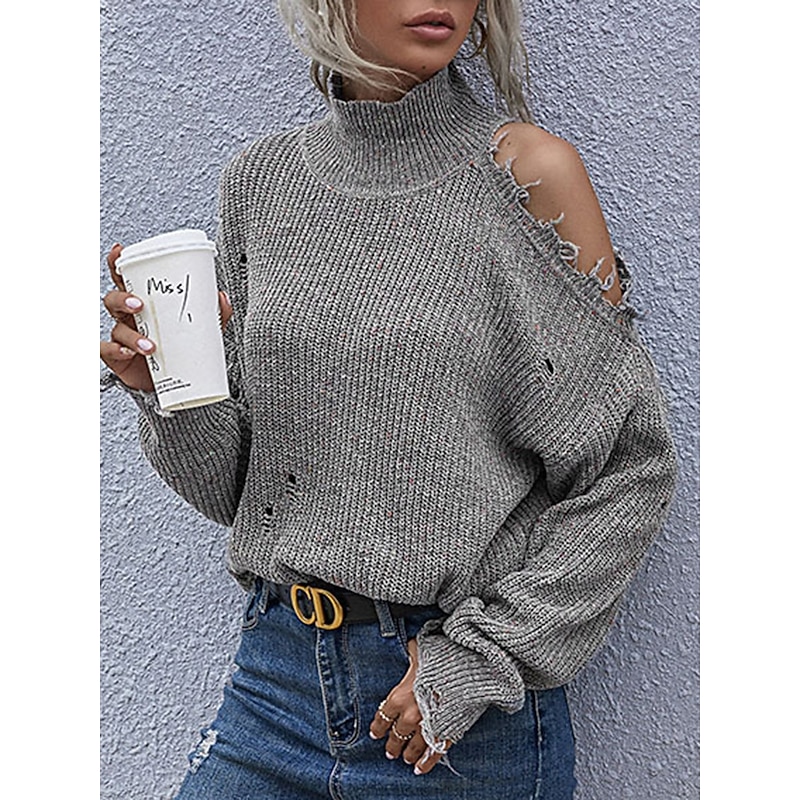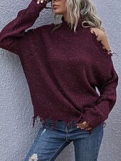 Highlights [Fabric] : Crafted from soft, high-quality polyester, this women's sweater ensures warmth and comfort during the fall and winter seasons. The ribbed knit style adds a touch of texture, enhancing its cozy appeal. [Fit] : Designed with a loose fit, the sweater features a relaxed silhouette, making it an ideal choice for layering or for a comfortable, laid-back style. The relaxed fit allows for easy movement and adds versatility to your wardrobe. [Design Highlights] : The sweater showcases a chic off-shoulder cut complemented by a V-neckline, giving it a current and trendy look. The frayed hems provide an edgy touch, while the subtle specks of color on the rich burgundy background add visual interest. [Occasions] : This versatile sweater is perfect for casual and soft styles, suitable for daily activities, outdoor adventures, and leisurely weekend outings. It's a go-to piece for pairing with jeans or casual pants, offering style and comfort for various occasions. [Size Range] : Available in sizes S, M, and L, this sweater caters to a broad range of body types, offering an attractive fit for different preferences. Perfect for everyday use. supreme materials and excellent craftsmanship ensure long-lasting durability.