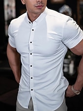 Why Choose Men's Shirt Summer Shirt Casual Shirt Button Up Shirt Black White Yellow Pink Army Green Short Sleeve Plain Turndown Vacation Casual Button-Down Clothing Apparel Fashion Lightweight pleasant Big?