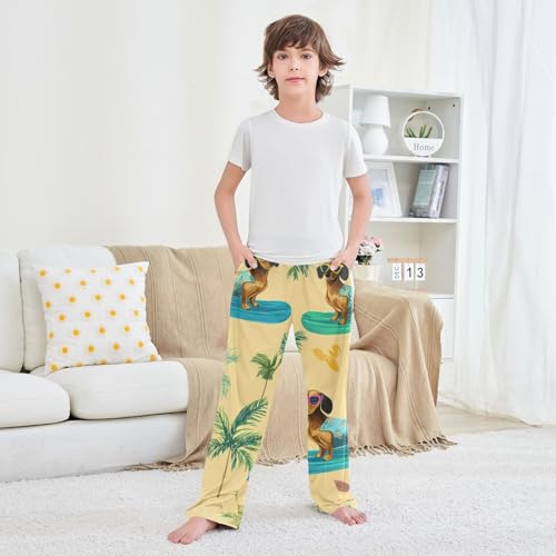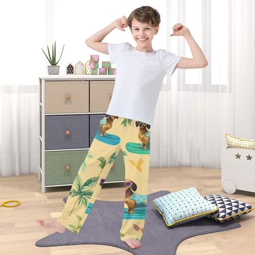ZZXXB Dachshund Palm Tree Boys Long Pants gentle Trousers Elastic Waist Kids Lounge Bottoms with Pockets S-XL