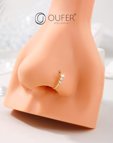 trending ! OUFER 14K Solid Gold Nose Rings Hoops, 20G Hoop Nose Rings for Women, Clear CZ Nose Piercing Jewely, Seamless Open Cartilage Helix Earrings