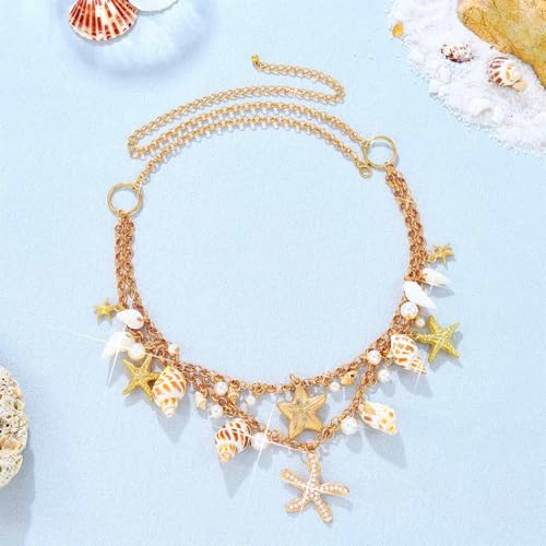 BODIY Gold Waist Chain Starfish Belly Chain Seashell Bikini Chain Summer Beach Waist Accessories for Women 3