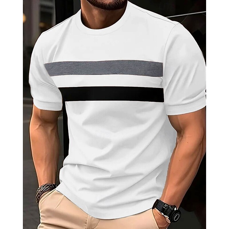 trending ! Men's T Shirt Tee Short Sleeve Shirt Tee Top Short Sleeve Crew Neck Summer Striped Fashion Designer Basic Patchwork Vacation Street Going out Dark Gray White Yellow Top Tee for Men