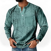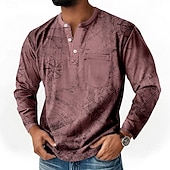 trending ! Men's Vintage Compass Henley Shirt T shirt Tee Long Sleeve Retro Vintage Casual Casual Spring Fall entire Seasons Dark Red Blue Green Purple Henley Henley T-Shirt