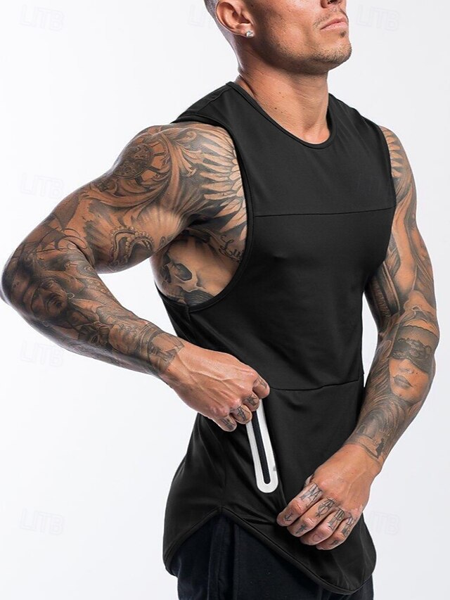 More information about Men's Tank Top Undershirt Sleeveless Shirt Gym Muscle Tee Sleeveless Crewneck Summer Plain Fashion Designer Muscle Double Sided Zipper Outdoor Going out Gym Black White Gray Top Tee for Men