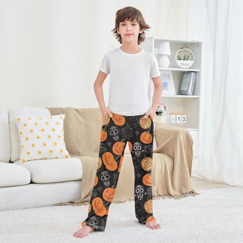 Evil Skull Pumpkin Boys Long Pants Soft Trousers Elastic Waist Kids Lounge Bottoms with Pockets S-XL 5