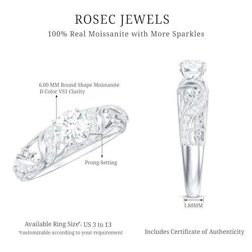• Crafted to shine as bright as your appreciate, this Moissanite Engagement Ring captures the essence of romance and makes hearts skip a beat. Reminiscent of bygone romance, this Vintage Engagement Ring is for timeless commitment.
