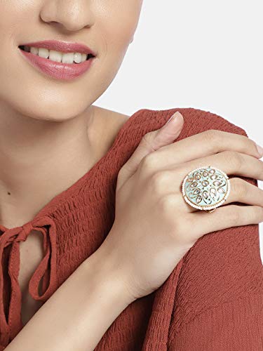 • QUALITY: The ring features high-quality kundan and pearl stones that are carefully set on a gold plating. The band is typically made with a rugged and long-lasting material that can withstand daily wear
