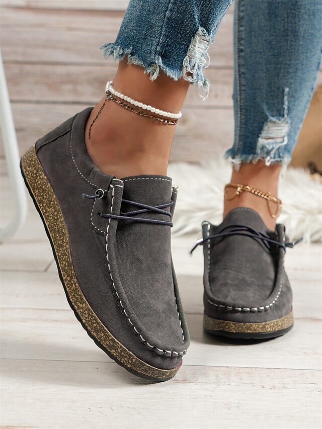 Women's Casual Grey Faux Suede Moccasins with Lace-Up Design and Cushioned Sole – pleasant Loafers for Everyday Wear