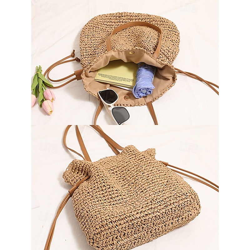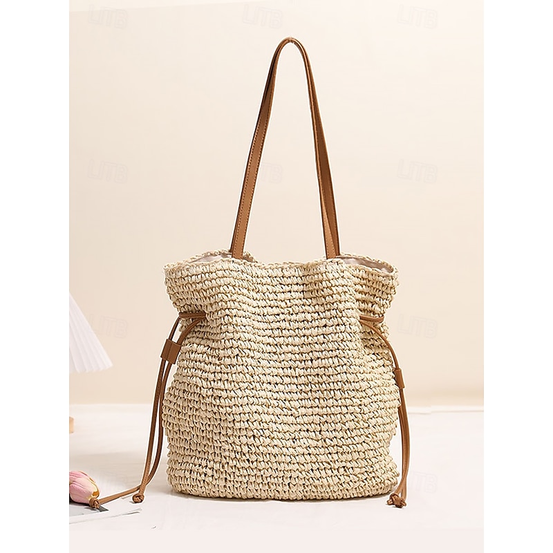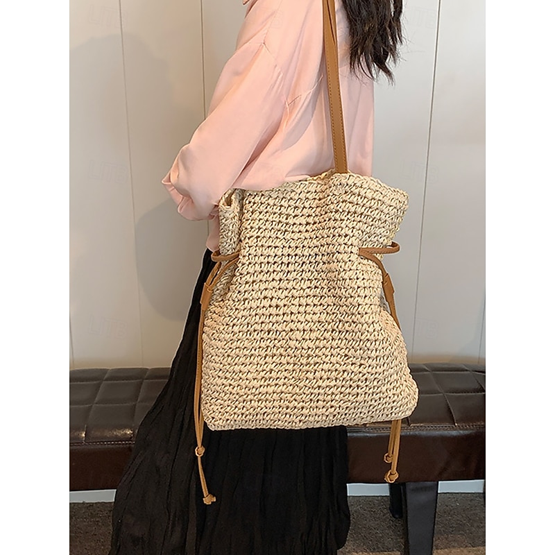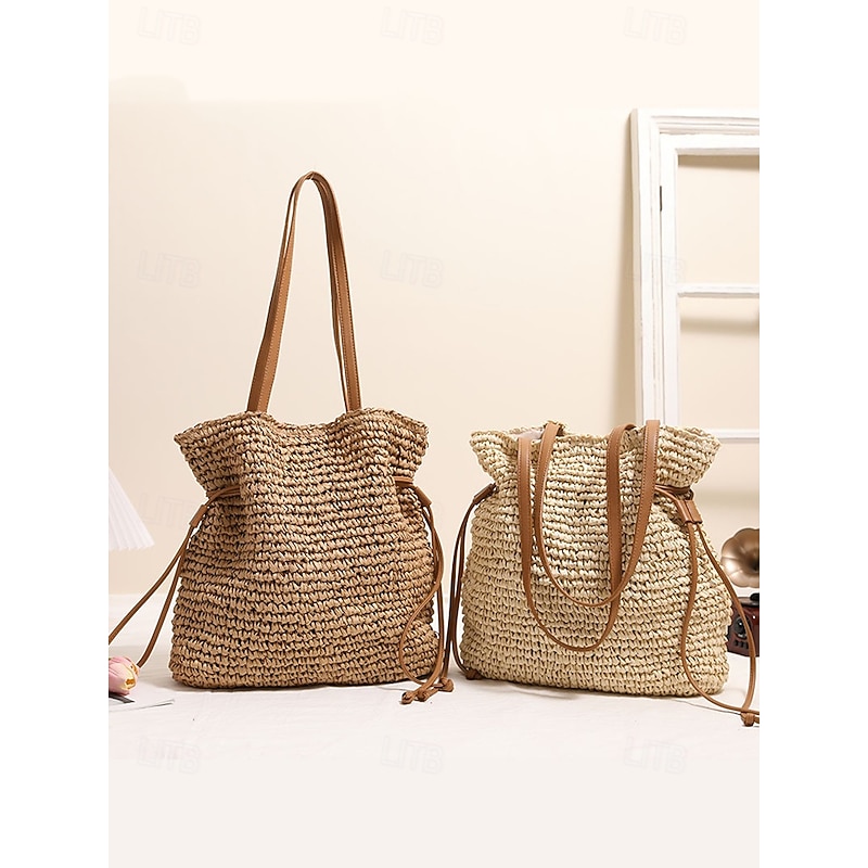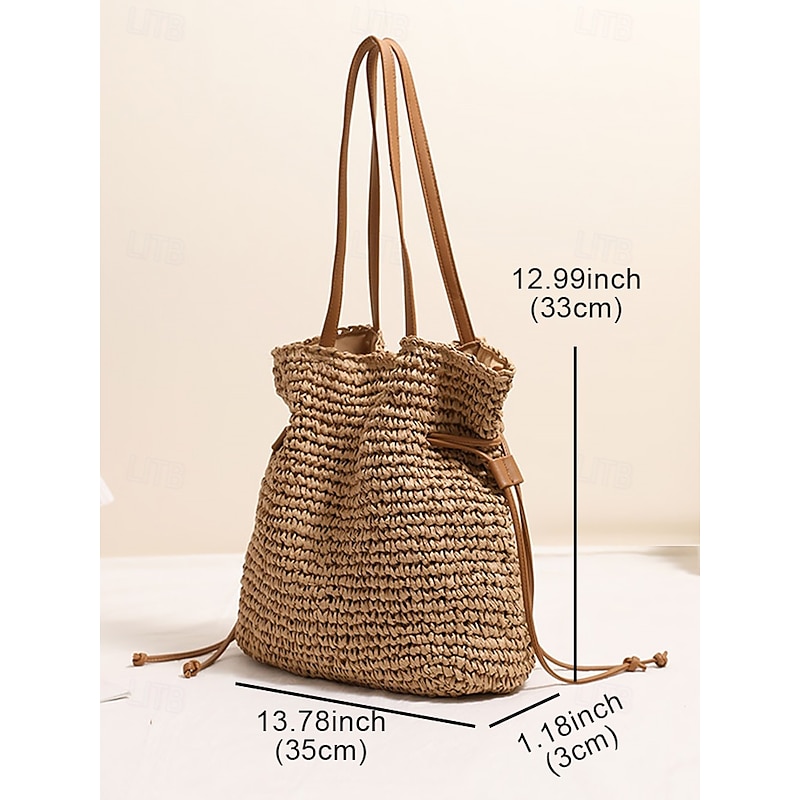 Why Choose Handwoven Straw Bucket Bag – Boho Drawstring Shoulder Tote, Lightweight Summer Beach Handbag for Women, Casual Vacation & Travel Accessory Color Beige Coffee?