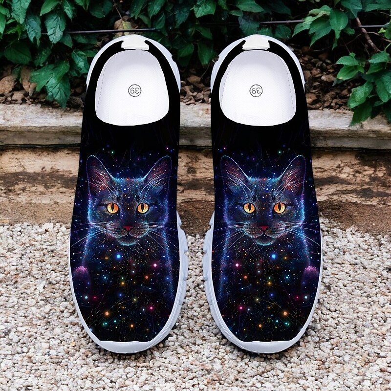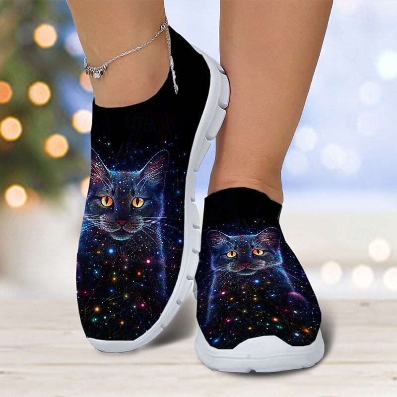 Why Choose Women's Cat Print Flyknit Sneakers with Lightweight Design - sleek Casual Shoes for Everyday Wear and Outdoor Activities?