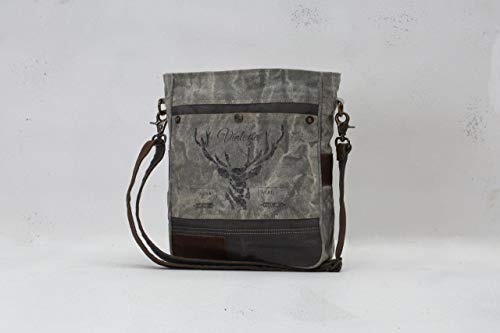 • {Lightweight Canvas Purse} This Myra Women's Royal Stag Vintage Shoulder Bag is the perfect combination of vintage and modern style. Made of lightweight gray canvas, it features a beautiful vintage reindeer print. The bag is also made of leather for added durability. It's perfect for carrying your everyday essentials!