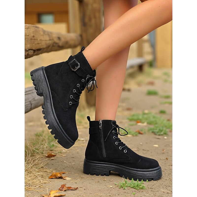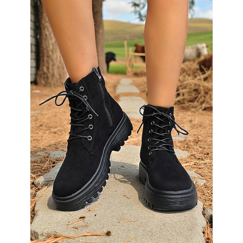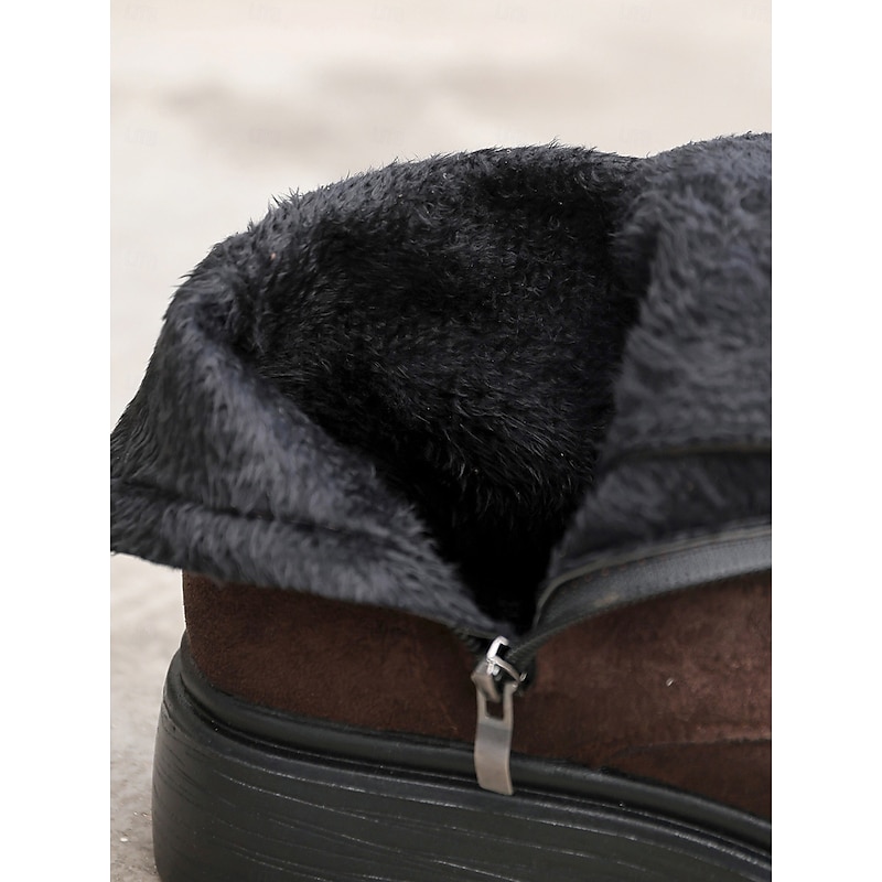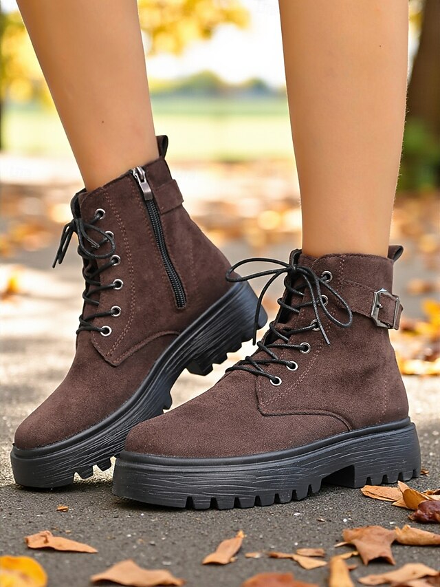 Why Choose Women's Brown Lace-Up Combat Boots with Faux Fur Lined and Buckle Strap, Chunky Non-Slip Sole, Casual Faux Suede Ankle Boots for City Nomadic Style Outfits and Winter Casual Wear?