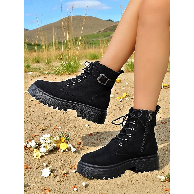This Women's Brown Lace-Up Combat Boots with Faux Fur Lined and Buckle Strap, Chunky Non-Slip Sole, Casual Faux Suede Ankle Boots for City Nomadic Style Outfits and Winter Casual Wear combines elegant design with practical functionality. Every detail has been carefully considered to ensure you get the best possible experience. The magnificent construction means this product will serve you well for years to come.