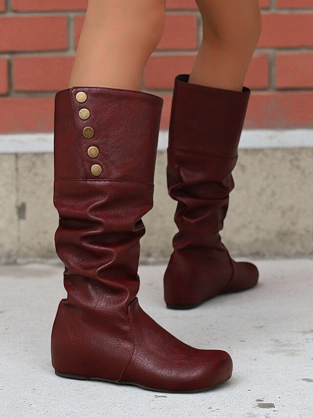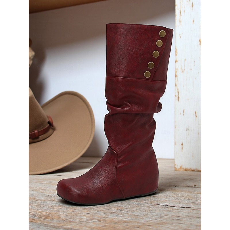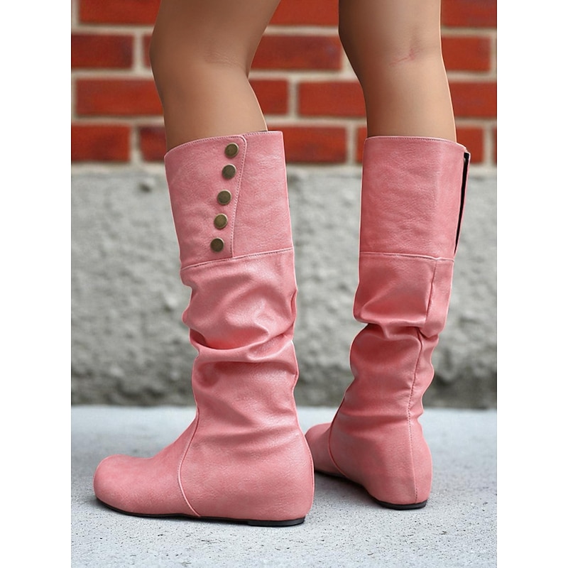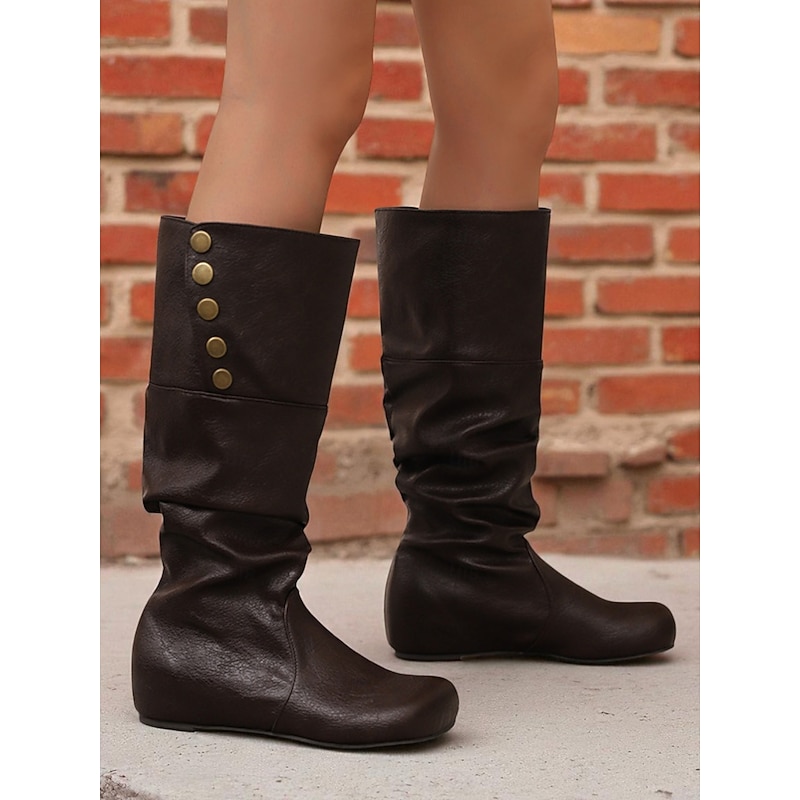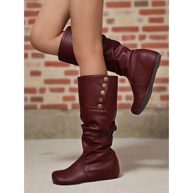 Why Choose Women's Mid Calf Slouchy Boots – Retro Button Detail Faux Leather Flat Winter Shoes for Casual Outfits and Travel?
