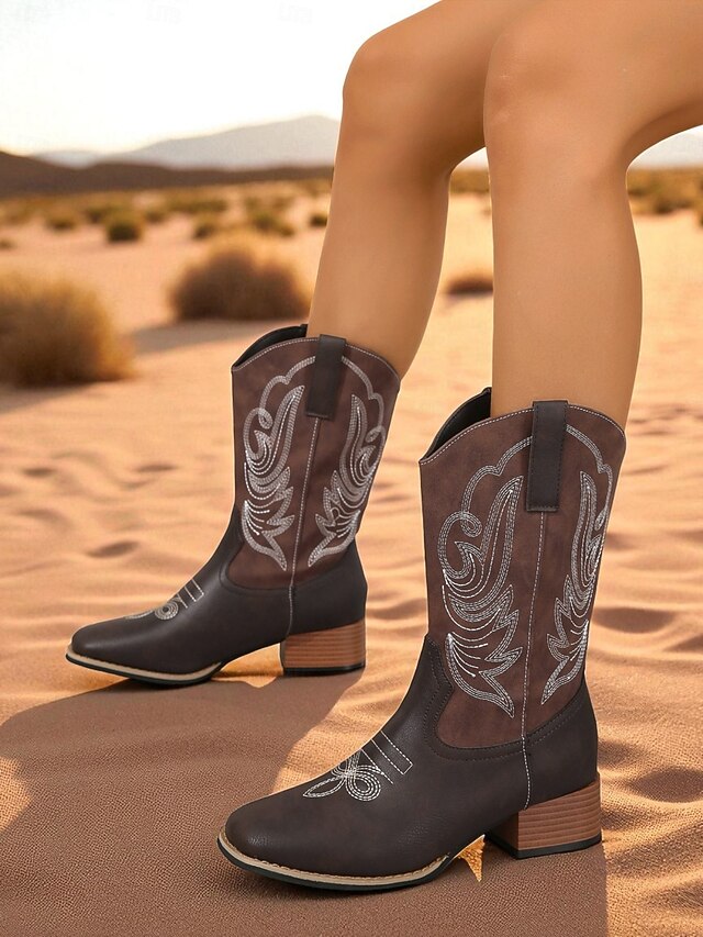 Why Choose Women's Dark Brown Western Cowboy Boots – Embroidered Faux Leather Mid-Calf Boots with Block Heel for Country, Rodeo and Casual Wear?