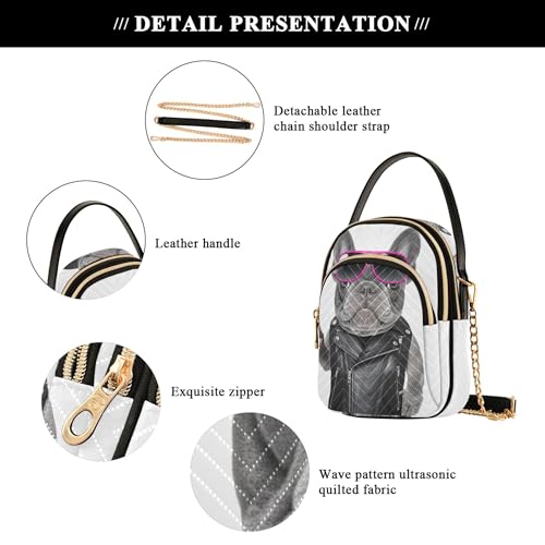 Funny French Bulldog White Women over Shoulder Purse Quilted Cell Phone Purse Chain Strap Cute Zipper Satchel Crossbody Tote 4