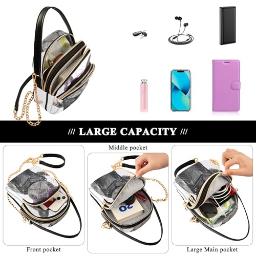 Funny French Bulldog White Women over Shoulder Purse Quilted Cell Phone Purse Chain Strap Cute Zipper Satchel Crossbody Tote 5