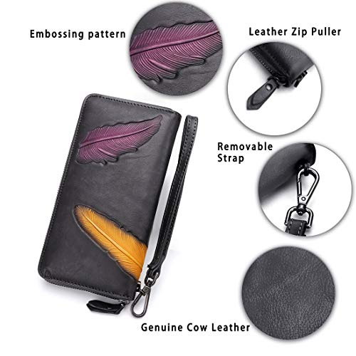 Why Choose Women's Wallet Genuine Leather Zip Around Wristlet Long Purse Vintage Embossing Cowhide Capacity Handmade Clutch(Darkgrey)?