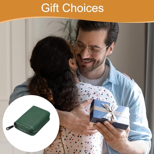uxcell Leather Credit Card Holder, 20 Slots Small Accordion Zipper Wallet for Women and Men RFID Blocking Secure Organizer with Zipper, MultiFunctional Wallet for ID & Cards (Green) 5